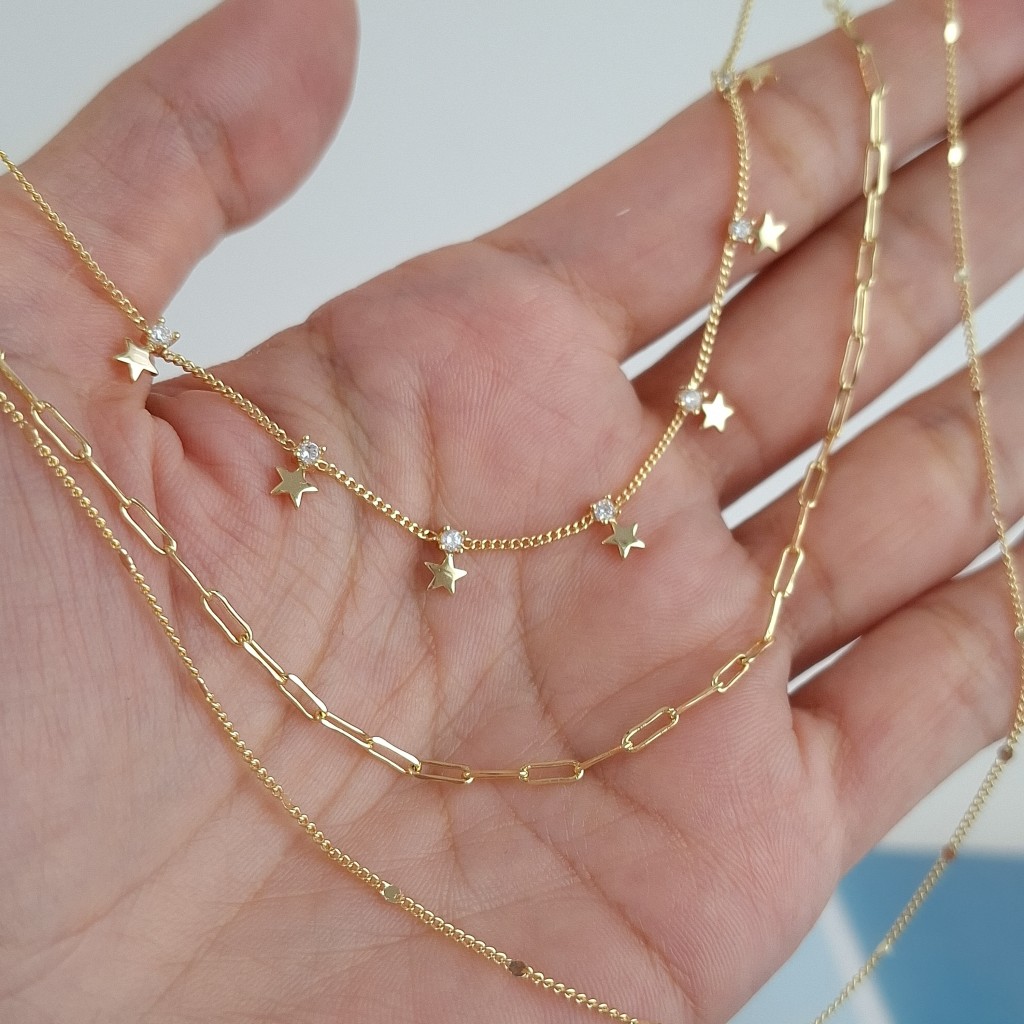 در مجموع، گردنبند سه ردیفه آویز ستاره و نگین انتخابی است که هم بُعد بصری ایجاد میکند، هم نور، هم حرکت. ترکیبی کامل برای کسانی که میخواهند استایلی شاعرانه، فشن و ظریف داشته باشند.