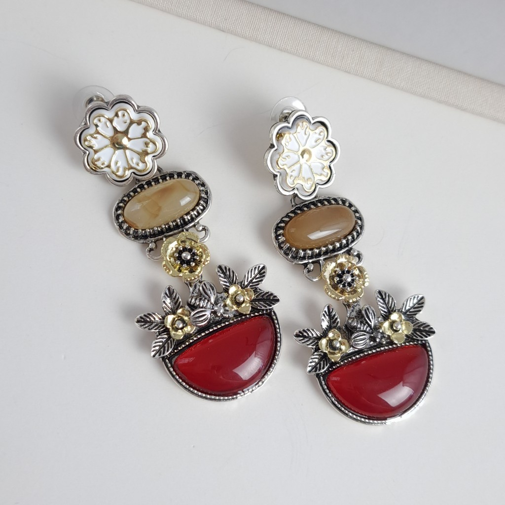 گوشواره گلهای سنگی قرمز زارا استایل*