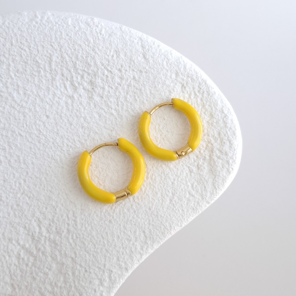 گوشواره حلقه استیل میناکاری ظریف زرد