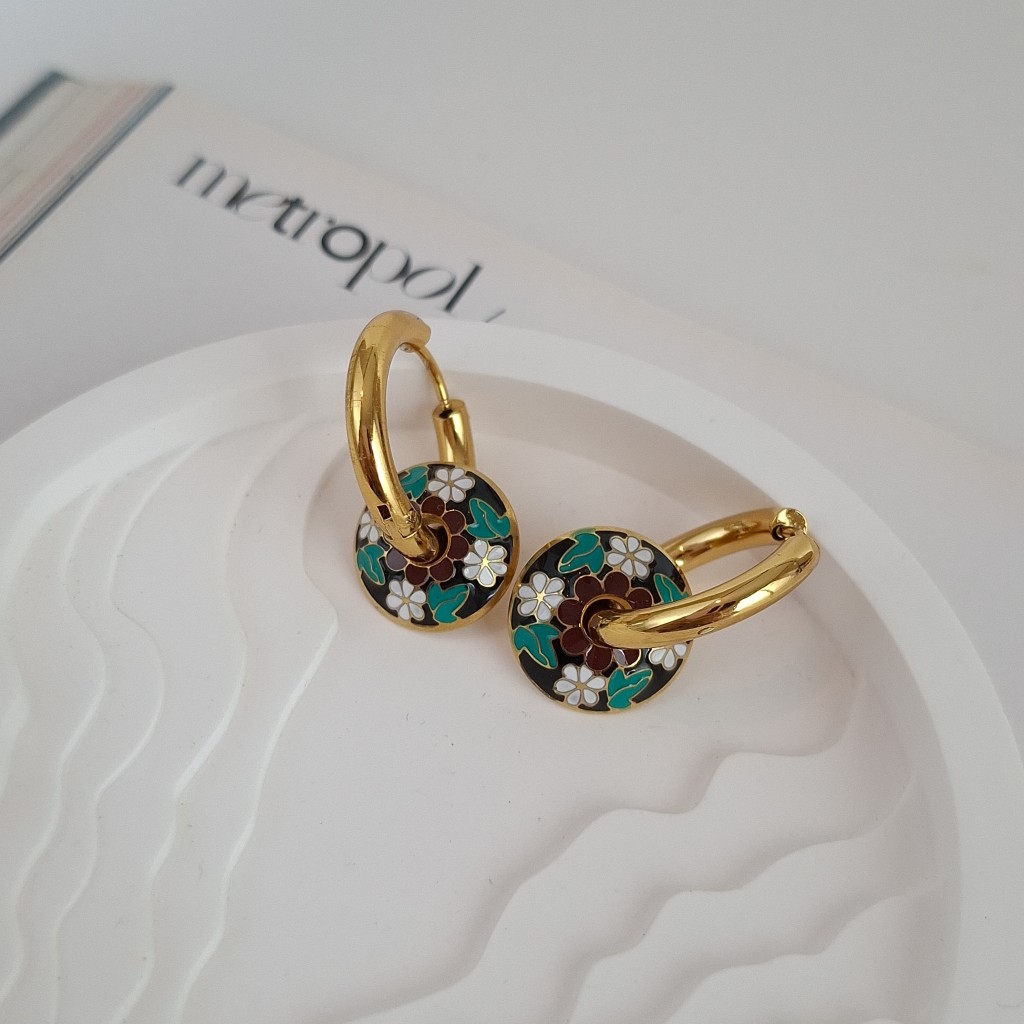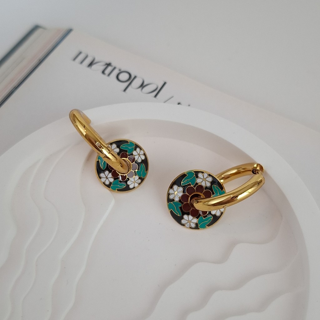 گوشواره وینتیج میناکاری مشکی گل سفید*