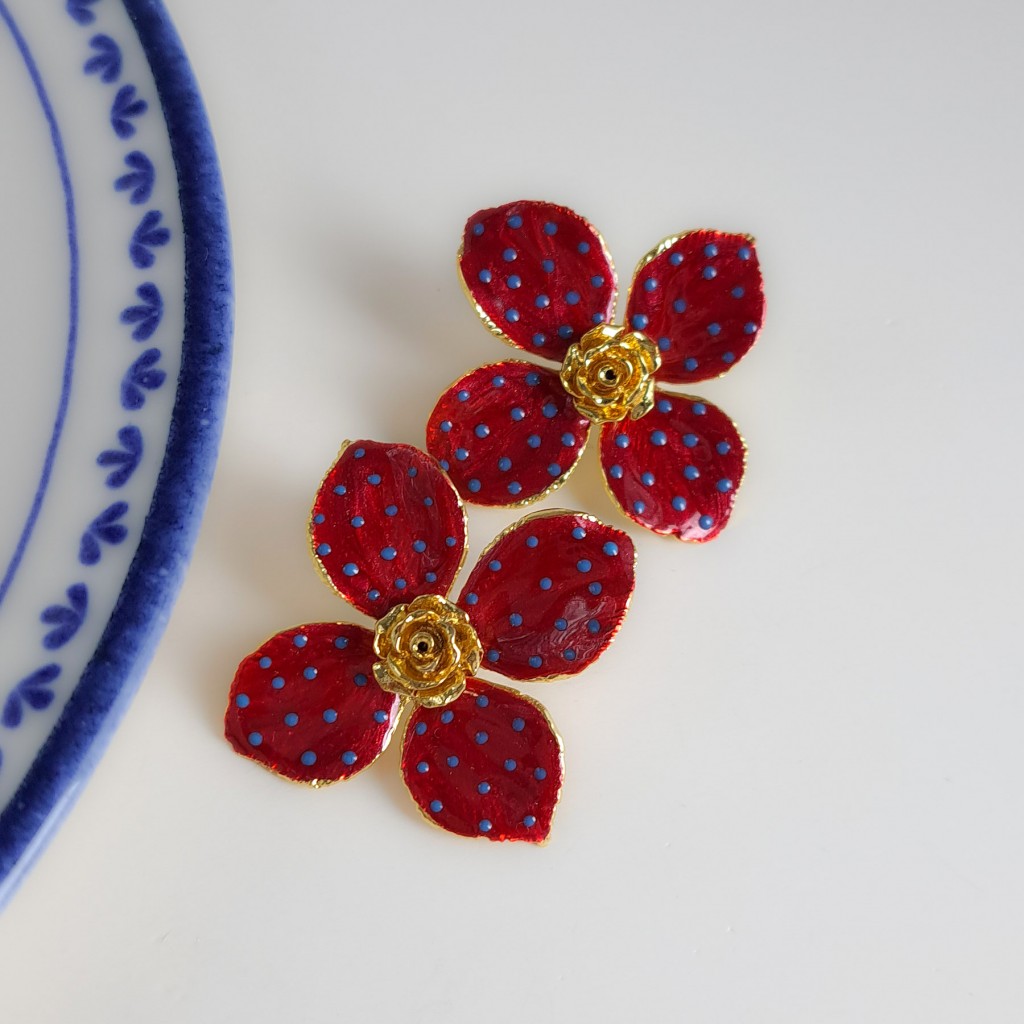 گوشواره گل سرخابی خال خال آبی*