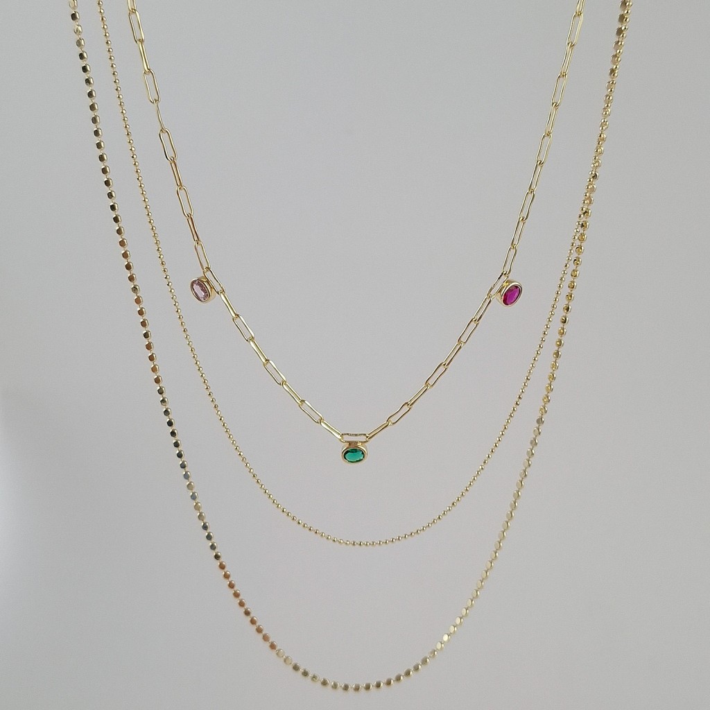 گردنبند سه ردیفه نگین رنگی*