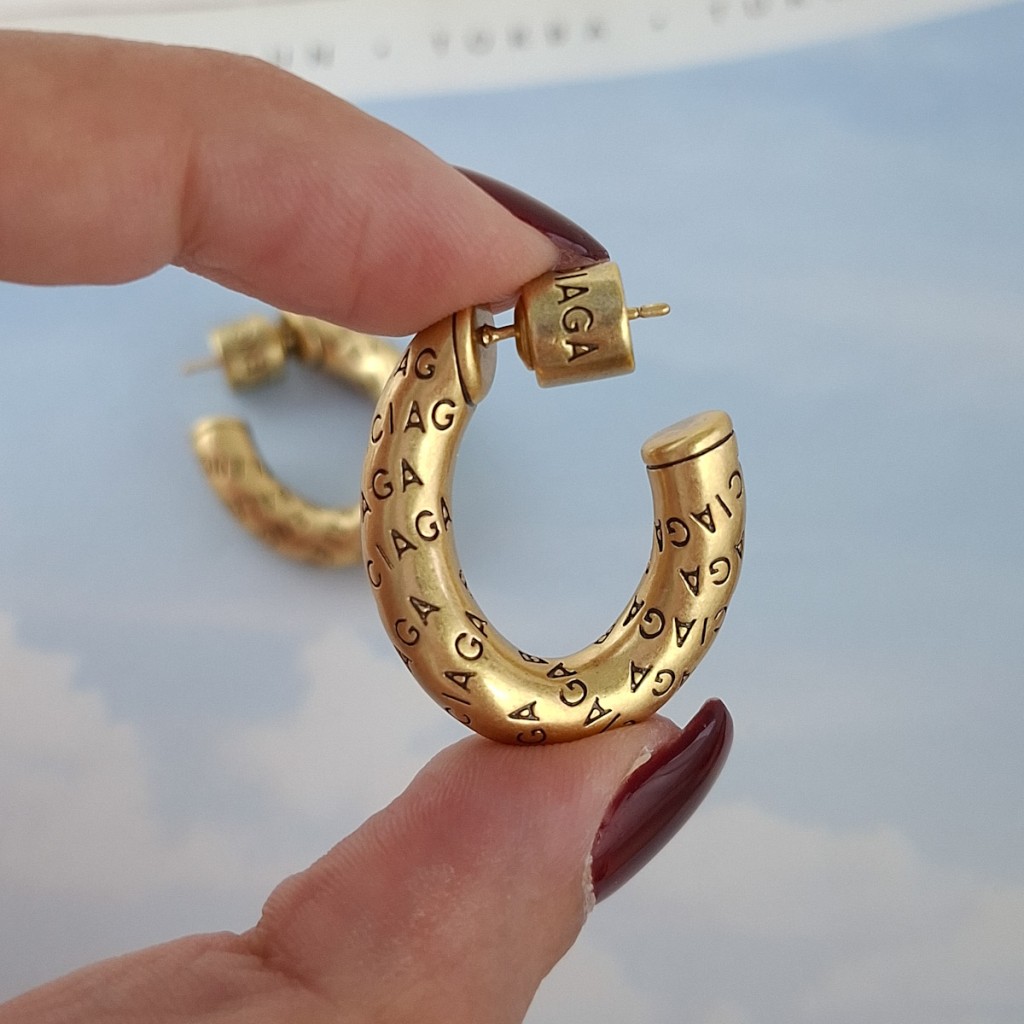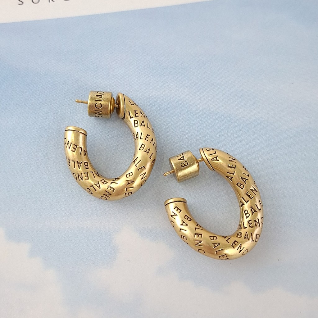 این محصول، یک جفت گوشواره هوپ (حلقهای) بسیار ترندی و منحصر به فرد است که با الهام از طرحهای برند مشهور بالنسیاگا (Balenciaga) ساخته شده است. طراحی این گوشواره بر اساس شکل نعل اسب یا C شکل است که سطح آن با حروف و لوگوهای برجسته پوشانده شده است. این گوشوارهها حس و حالی لوکس، قدیمی (ویتنیج) و در عین حال کاملاً مدرن و فشن دارند. اگر به دنبال یک اکسسوری هستید که استایل شما را در یک نگاه، بهروز و شیک نشان دهد، این گوشواره انتخابی عالی است.