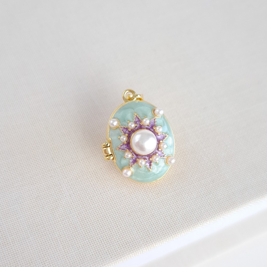 لاکت بیضی مروارید میناکاری بنفش و سبز
