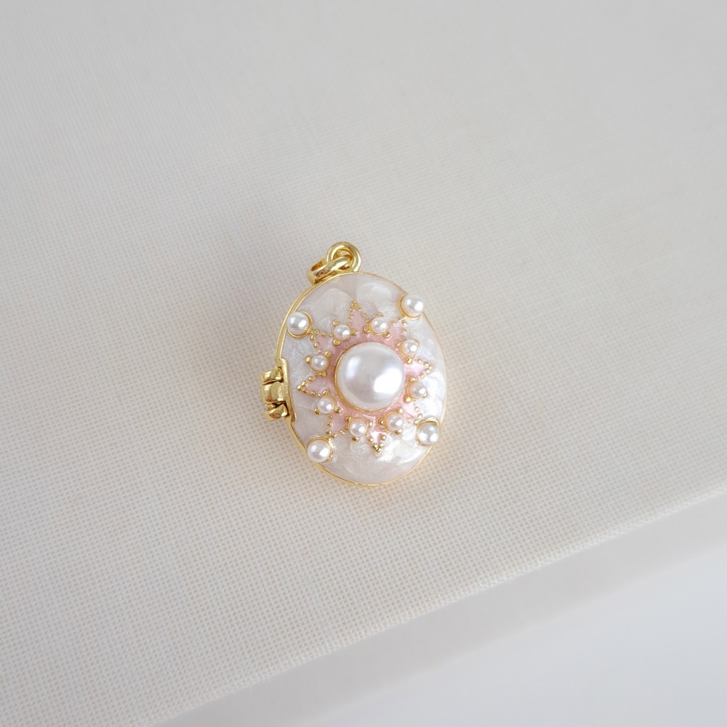 لاکت بیضی مروارید میناکاری سفید و صورتی