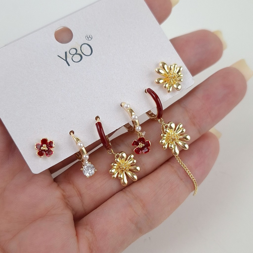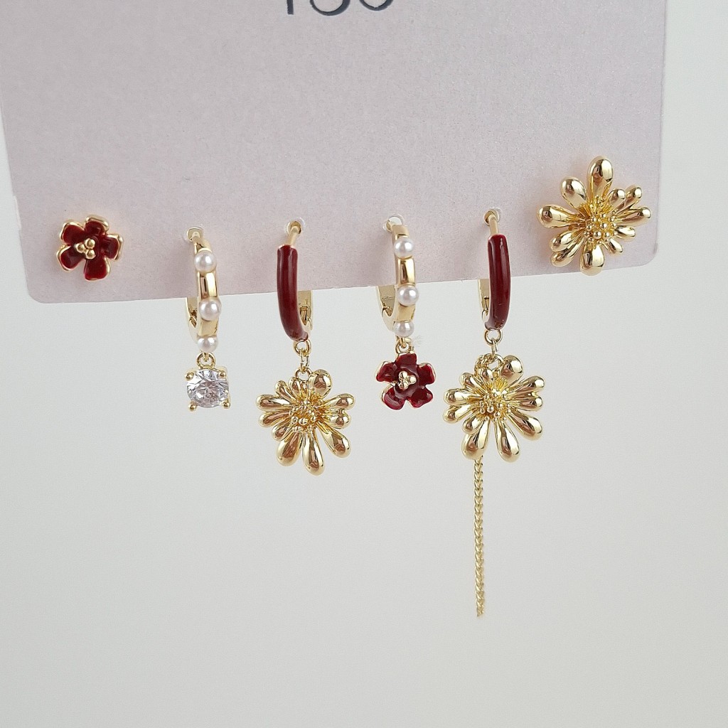 پک گوشواره شش عددی گل قرمز | گوشواره فشن ساخت کره با کیفیت بالا