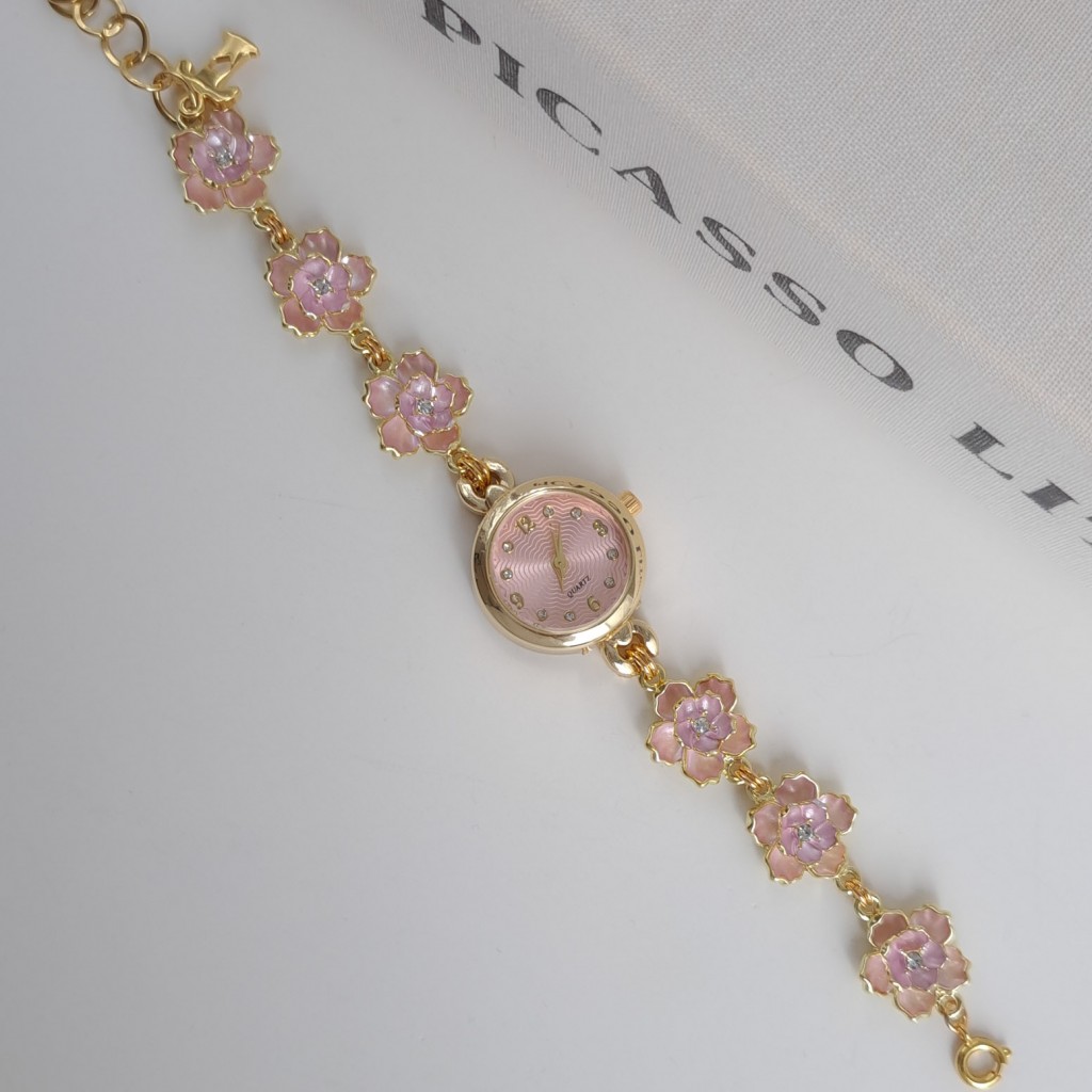 ساعت فلاور صورتی زنانه با طراحی دستساز و گلدار؛ ساعت عقربهای شیک و ظریف برای استایل روزمره و هدیهای خاص و ماندگار.
