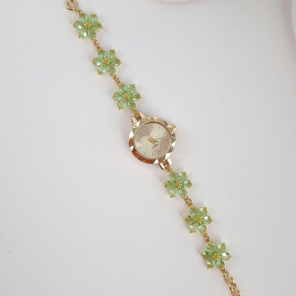 ساعت گل ششپر سواروسکی سبز | ساعت زنانه خاص و فشن