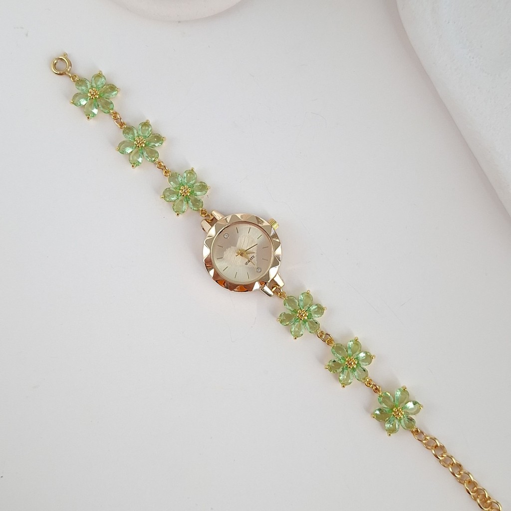 ساعت گل شش پر سواروسکی سبز*