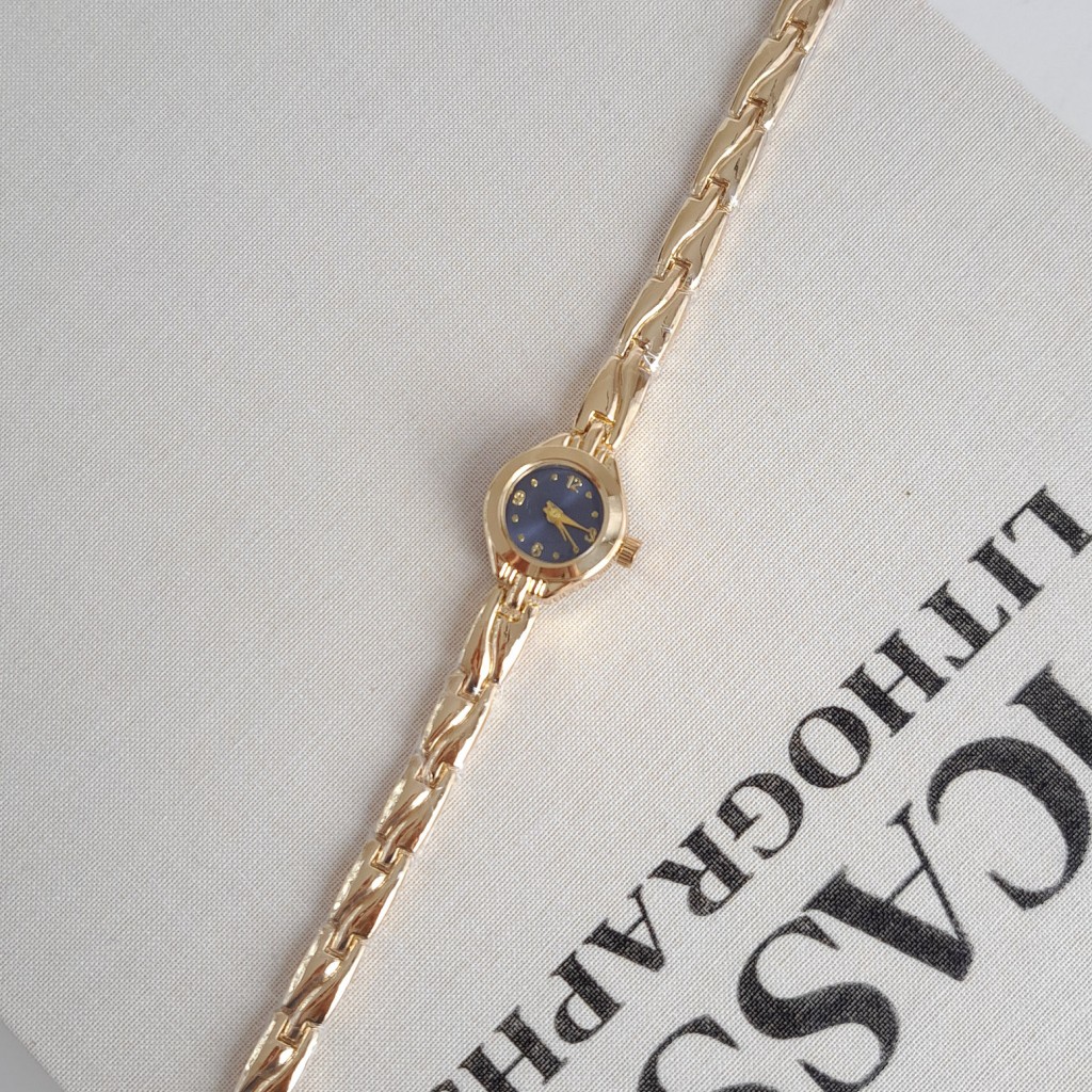 ساعت وینتیج صفحه دایره کوچک سورمهای از برند Nilay Jewelry، یکی از خاصترین طراحیهای الهامگرفته از ساعتهای کلاسیک اروپایی است. این مدل با ترکیب صفحه سورمهای عمیق، قاب طلایی براق و فرم دایرهای کوچک، حس اصالت و ظرافت ساعتهای لوکس دهههای ۶۰ و ۷۰ میلادی را به زیبایی زنده کرده است.