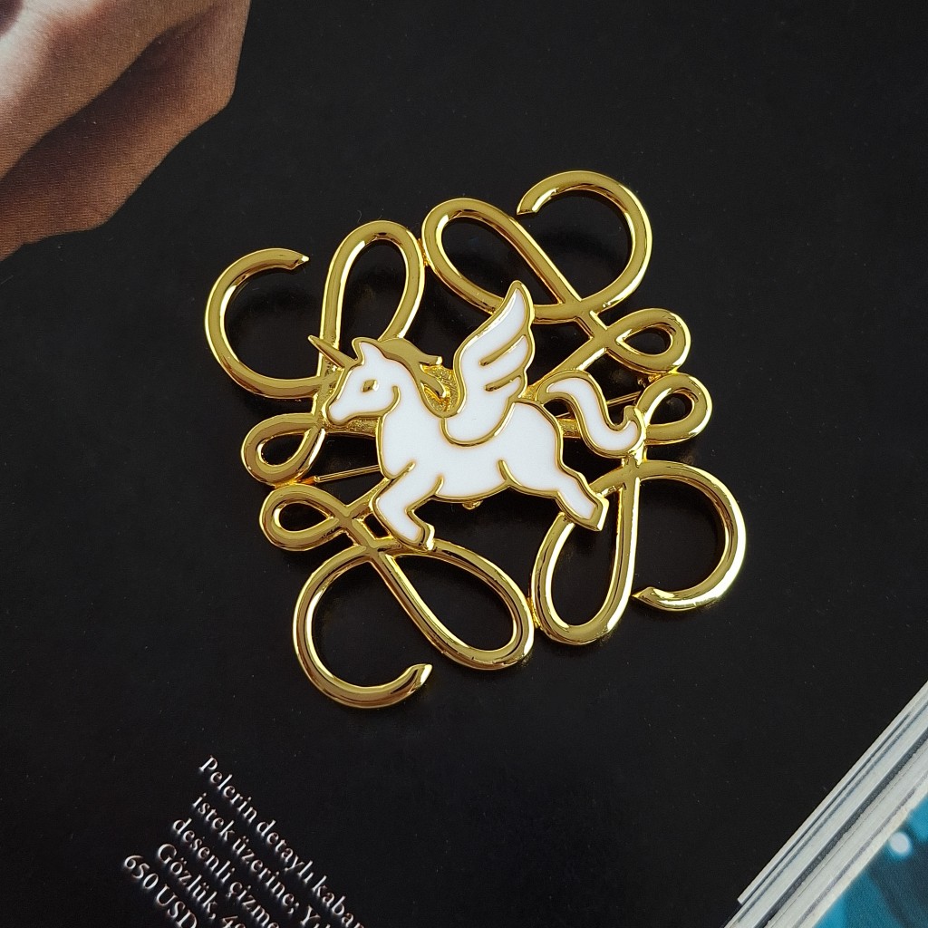 این محصول، یک سنجاق سینه بسیار خاص و ترندی است که با الهام از لوگو و طراحیهای فشن برند لوئوه (Loewe) ساخته شده است. اگر به دنبال خرید یک اکسسوری باکیفیت و متفاوت هستید که نشانههای برندهای لوکس و طرحهای هنری را داشته باشد، این مدل انتخابی عالی است. این سنجاق سینه با ترکیب رنگ طلایی و اسب تکشاخ سفید، جلوه و سبکی خاص را به لباس شما میدهد.
