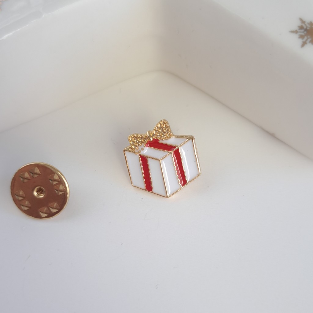 طراحی این سنجاق با دقتی بینظیر انجام شده است؛ بدنهی سفید درخشان آن جلوهای خالص و ظریف دارد و ربان قرمز براق که با دقت روی جعبه نقش بسته، حس لوکس و در عین حال پرشور یک هدیه خاص را منتقل میکند. تضاد رنگ سفید و قرمز نهتنها از نظر بصری چشمنواز است بلکه بار احساسی خاصی دارد — ترکیبی از آرامش و هیجان، درست همانطور که لحظهی باز کردن یک هدیه حس میشود.