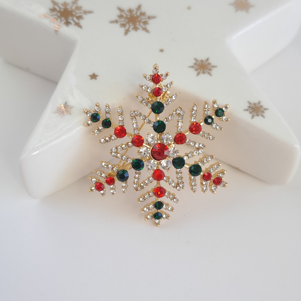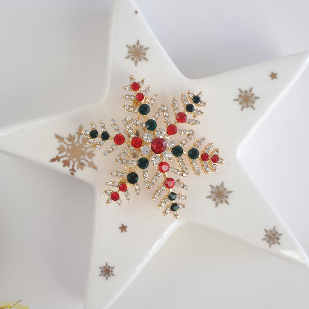 نمونهای برجسته از طراحی فانتزی و دقیق است که با جزئیات رنگی و نگینهای متنوع، جلوهای بینظیر به استایل شما میبخشد. فرم ستاره شش پر با دقت بالایی ساخته شده و هر پر آن با نگینهای سفید، مشکی و قرمز تزئین شده است تا تضاد رنگی ظریف و جذابی ایجاد کند. این طراحی نه تنها چشمنواز است، بلکه حس جشن و سرزندگی را به اکسسوری شما اضافه میکند.